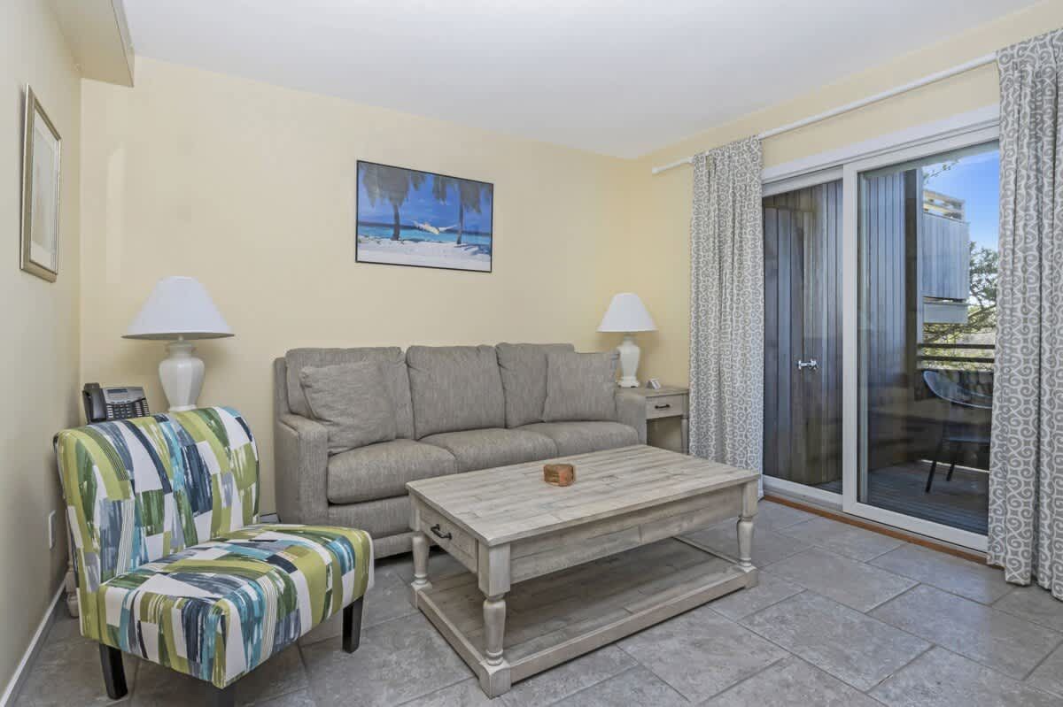 Approx. 471 sq. ft.: 1 br, 1 bth; Located on the 1st floor; Less than 20 steps from the main entrance and under 50 steps to the beach; Garden views; Fully equipped kitchen, linens, and towels provided; Private deck, air conditioning, Wi-Fi, cable TV; Free on-site parking; Access to beach and pool chairs, & umbrellas (available by reservation)